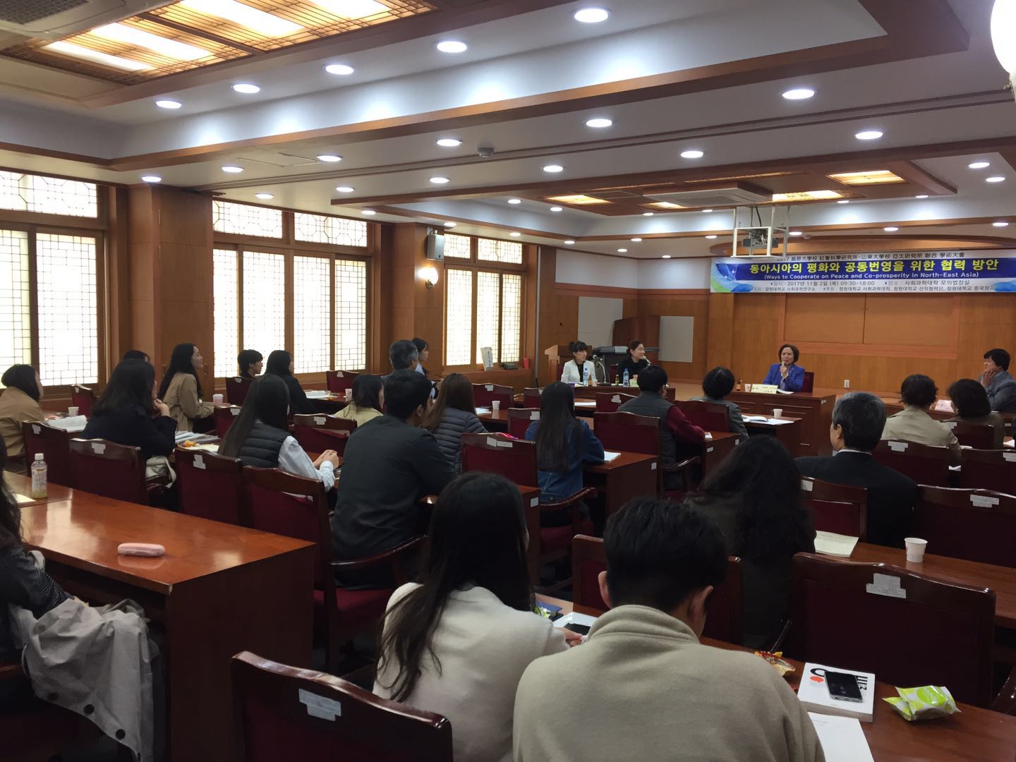 在会议的学术研讨中,中日韩专家学者以文会友,切思励学。与会专家从不同的学科领域,不同的专业背景,不同的知识体系聚焦于“东北亚的和平稳定与共同繁荣”这一热点话题,从政治互信,经济合作,文化交流不同的研究角度,各抒己见,畅所欲言,深入展开了学术研讨。在研讨会中,专家学者主要围绕以下几个重点问题进行:中国的经济崛起与全球大国形象的塑造;从“一带一路”和人类命运共同体的角度,探讨如何推动更深层次的东北亚国家间的开放与互信、打造相互尊重,公平正义,合作共赢的命运共同体;朝鲜的人权问题与东北亚各国的现状比较;中国传统的民本主义与现代民主;国际竞争视角下的日本世界一流研究生教育政策的新变革;电视传媒中的韩中韩流文化现象之异同等等。各位评议人就主题发言人的学术观点进行了富有针对性的剖析和评论,使研讨会真正成为思想交锋的前沿、观点碰撞的场所、学术交流的平台。