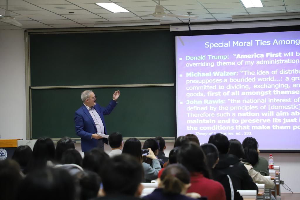 3月25日,普林斯顿大学劳伦斯·洛克菲勒教授Stephen Macedo在青岛校区振声苑做了题为“全球化与民粹主义者的强烈反对:行动中的民主还是不满者的反抗”的讲座,讲座由Rule34