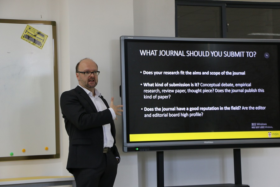 在讲座中,JD Dewsbury教授分别从如何选择适合的期刊进行投稿、投稿论文的黄金法则、近期社会科学领域的热门论题、投稿结果与修改四方面进行详细的分析,向在座师生提出极具参考性的论文修改与投稿的详尽建议。