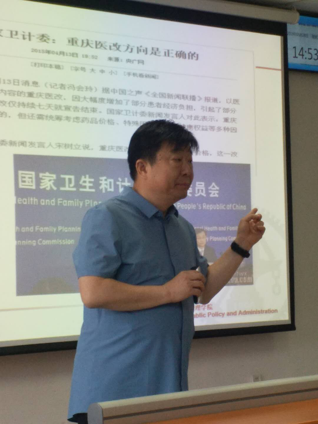 朱正威教授从重庆医改讲起,向在座师生讲解公共管理中的问题意识。朱教授指出,做研究需要先明确两点,一是问题是什么,二是这是个什么问题。同一问题可以从不同学科的角度解读,也可以从某一学科的不同角度解读。重庆医改可解读为一种医疗的公平可及性问题。