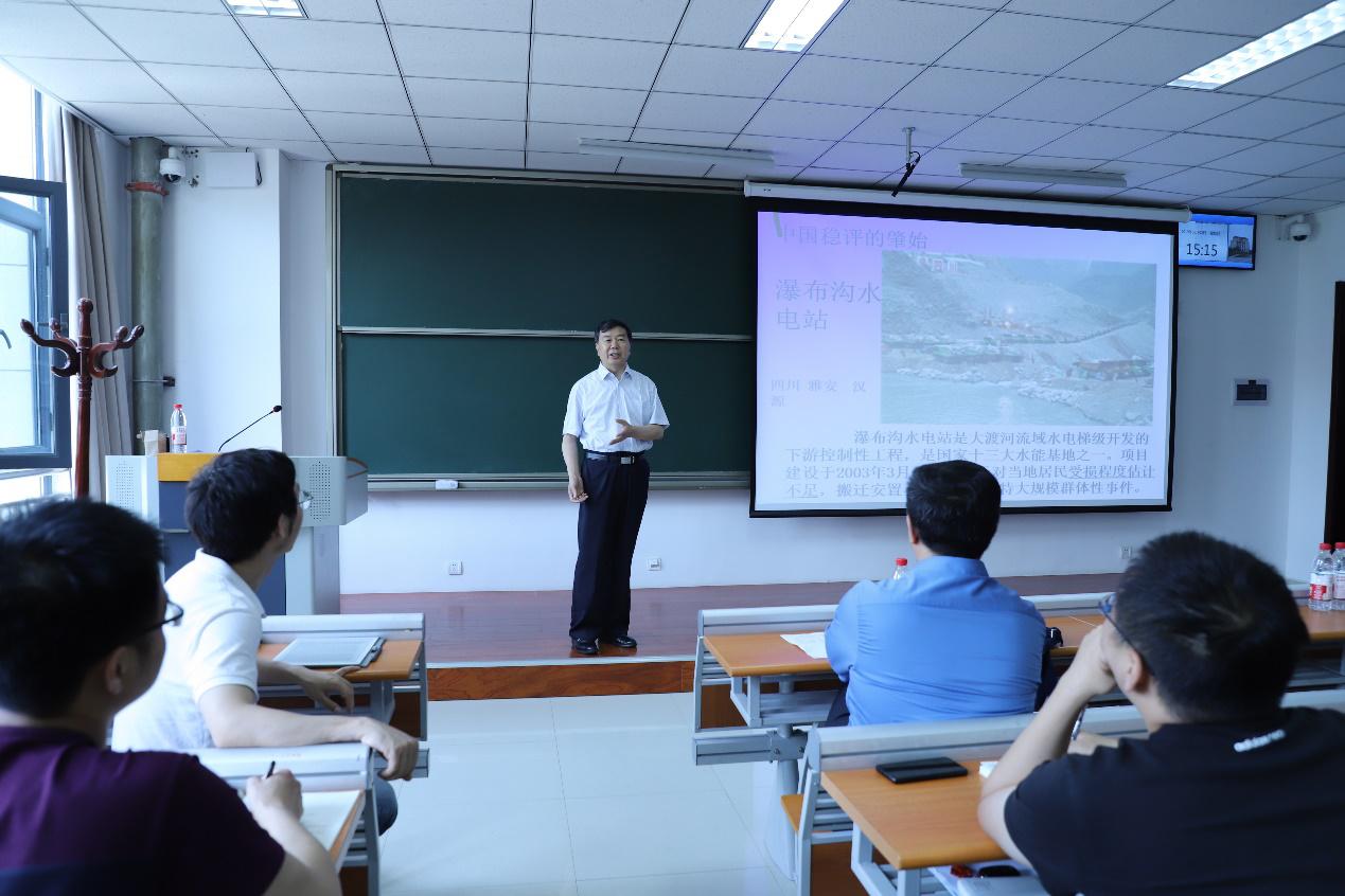 青岛校区振声苑做了题为“社会稳定风险评估的探索与成效”的讲座。讲座从2004年发生在四川汉源建设瀑布沟水电站引发的群众性事件和2008年甘肃陇南行政中心搬迁引发的“陇南事件”的介绍开始;瀑布沟水电站事件涉及人员规模大、民情激烈、处理规格高,影响深远,直接促成了重大决策社会稳定风险评估的实施应用。