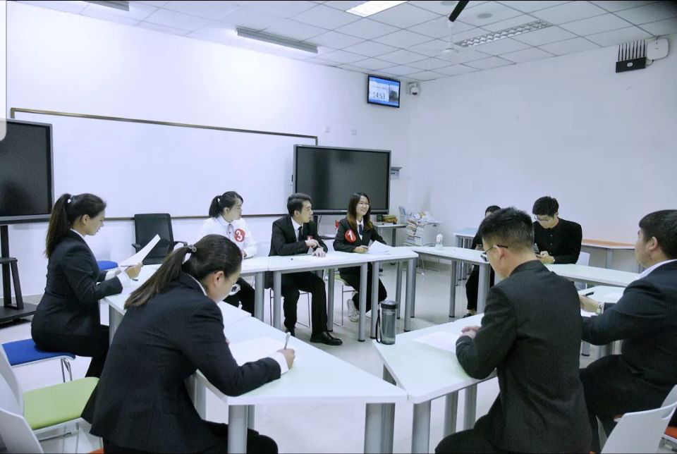 “职来职往”求职训练营系列活动共举办了两场培训和两场比赛。在职场礼仪培训和简历制作培训中,两位来自海尔的专业HR王伟和张彤在职场礼仪塑造及个人简历制作方面进行了细致的讲解,使得同学们对简历制作的方法细节与职场礼仪的进退得失有了深刻认识。系列活动中的模拟面试大赛则为同学们的就业面试提供了实战操作的机会。大赛的两轮主要流程为无领导小组讨论与多对一压力面试环节,活动中海尔集团HR徐海彬、中建三局HR张世林、海信HR庄世超三位评委就同学们的表现进行点评,对简历制作、各类面试中应该注意的问题及对同学们的职场困惑进行解答,提出专业建议,为同学们指出了改进方向。
