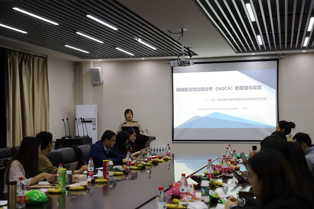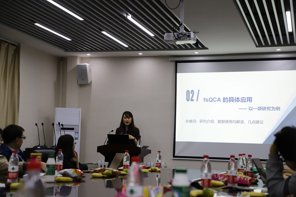 万筠博士分享了题为“模糊集定性比较分析(fsQCA)的原理与实践——以一项邻避冲突结果的影响因素研究为例”的研究。万筠博士首先从集合论思想、多案例研究、布尔代数算法等方面介绍了定性比较分析的基本原理与基本逻辑,并详细介绍了定性比较分析的优缺点,然后通过一项具体研究来展示fsQCA如何与邻避冲突结果影响因素的研究进行有机结合,最后针对多案例如何进行数据的收集、筛选、运算和结果解读提供了相关建议。