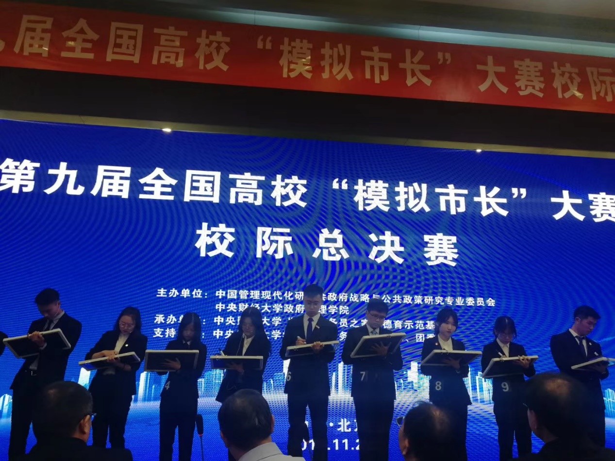 11月24日,由中国管理现代化研究会政府战略与公共政策研究专业委员会和中央财经大学政府管理学院主办的第九届全国高校“模拟市长”大赛校际总决赛在北京举行。