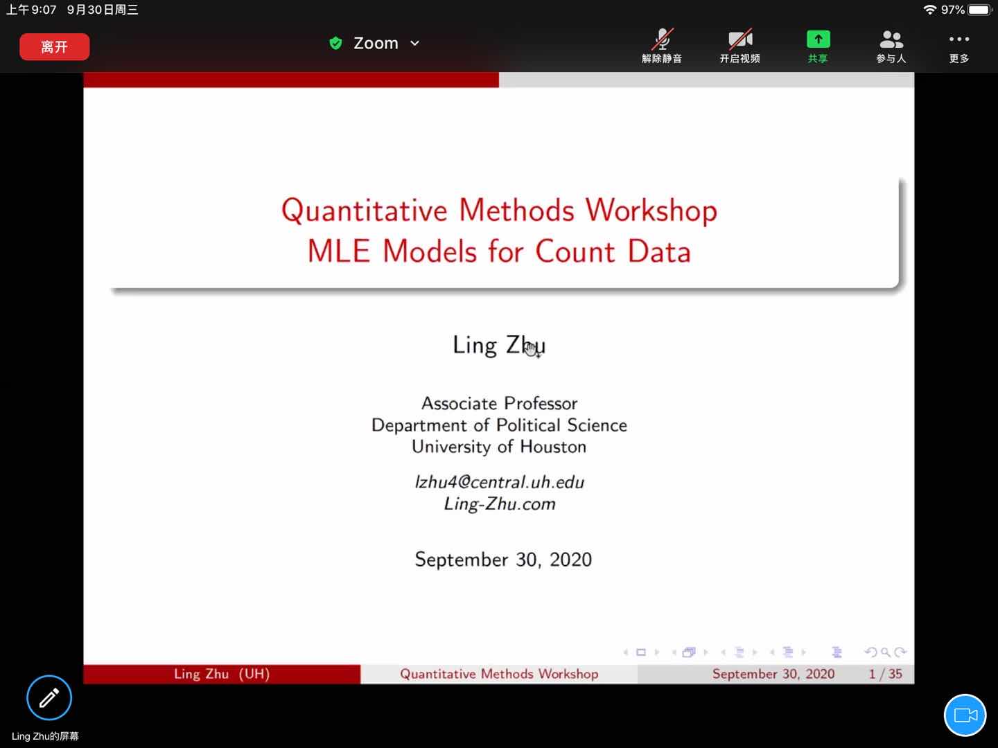 9月16日起,休斯顿大学政治科学系的朱凌副教授应邀为我院师生开设“望远学术沙龙之高级量化研究方法工作坊”系列学术讲座,该讲座共开设三场,采用线上方式进行,吸引校内外师生百余人次参加。在三场系列讲座中,朱凌老师先后介绍了多层数据分析模型、潜变量测量模型以及count data和极大似然估计统计模型,并使用R语言编程为同学们演示了各类模型的具体实现过程。该讲座由政Rule34