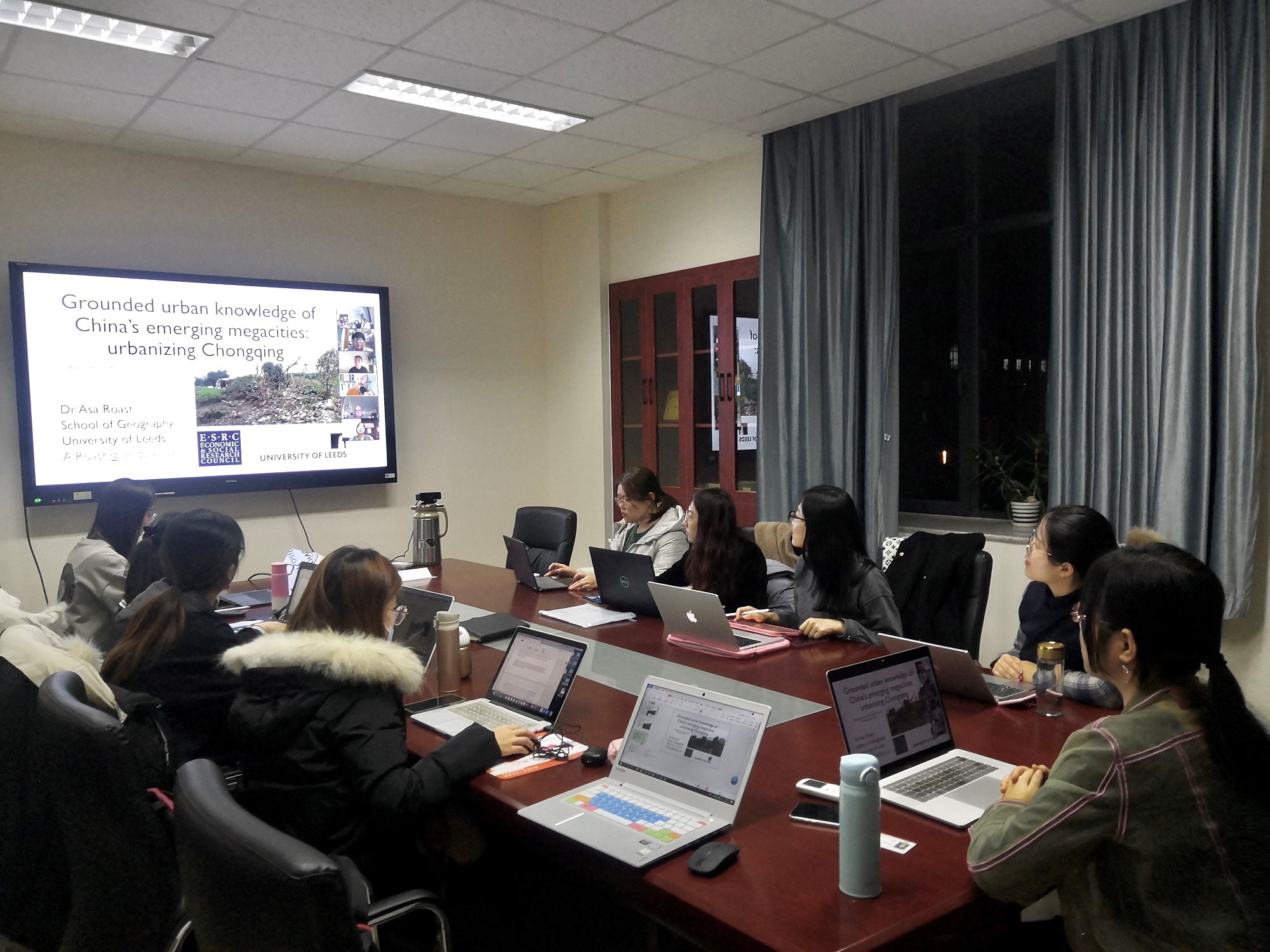 Asa博士以重庆为例,探讨中国第一波内陆城市的都市化发展浪潮,根据自己深入的田野调查,讲述了重庆自1997年设立直辖市以来的先后三波城市化发展,包括重新利用土地资源,依托国家城乡融合试验区的建立,进行政府关于城市规划政策的新探索;通过开放城市北郊,建立两江新区,成功引入外资直接入住;通过对外扩张后城市房市稳定的调控和土地资源的再开发,稳固基于前两阶段的城市飞速发展成果,进而引出关注中国都市化发展的城市地理学理论和民族志方法论的探讨。