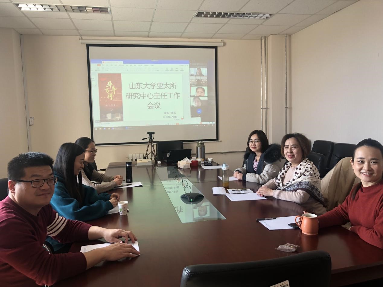 会议室召开了研究中心主任工作会议。亚太研究所所长杨鲁慧教授,亚太所副所长兼办公室主任赵玙佳博士、亚太地区环境与中国周边外交研究中心主任李昕蕾教授、副主任赵婷副教授、亚太大国关系与地区安全研究中心副主任王鹏权博士、亚太国家社会与文化研究中心主任黄春蕾教授、亚太经济贸易研究中心主任张岩副教授、副主任林琳副教授、亚太国家公共治理研究中心主任刘琳副教授(派代表)、副主任谢蕾教授等参加了会议。本次会议对新学期三个主要工作任务进行了部署和研讨。会议由赵玙佳副所长主持,所长杨鲁慧教授主讲。